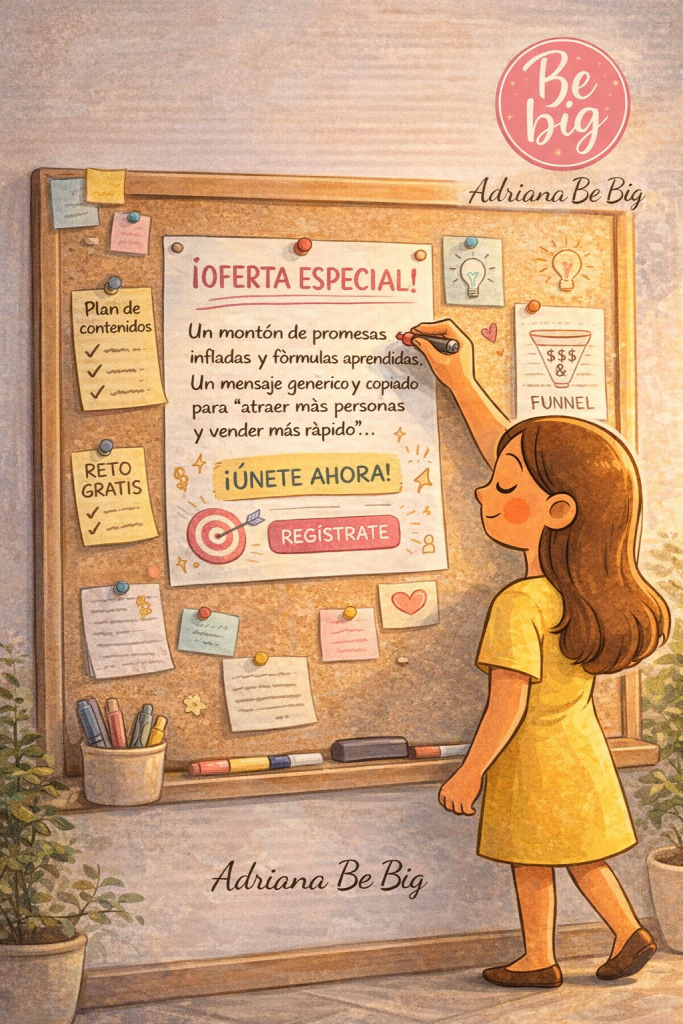 Se sigue una fórmula que “funcionó para otros”, se copia una estructura de lanzamiento, se replica un discurso aspiracional… pero la oferta no nace de la identidad real de quien la sostiene. Y eso, aunque no siempre se note a nivel racional, se siente.